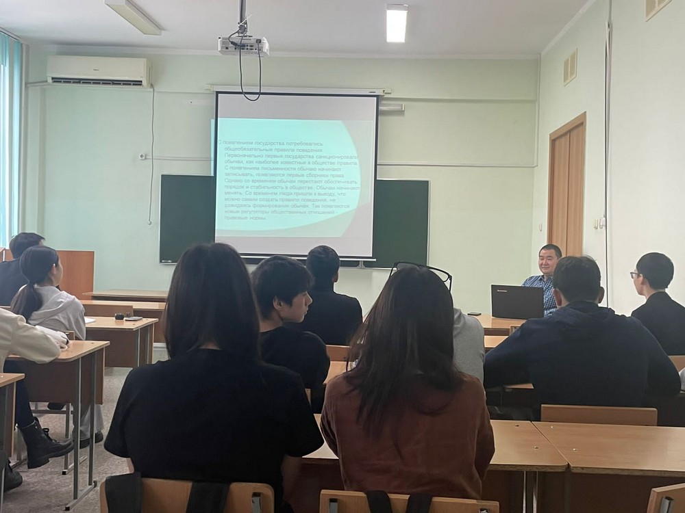 Сегодня доктор юридических наук, заведующий кафедрой теории и истории государства и права Евгений Команджаев провел для учащихся 10-11 классов элистинской школы №4 открытую лекция на тему «Государственно-правовое развитие калмыцкого кочевого общества в составе России».