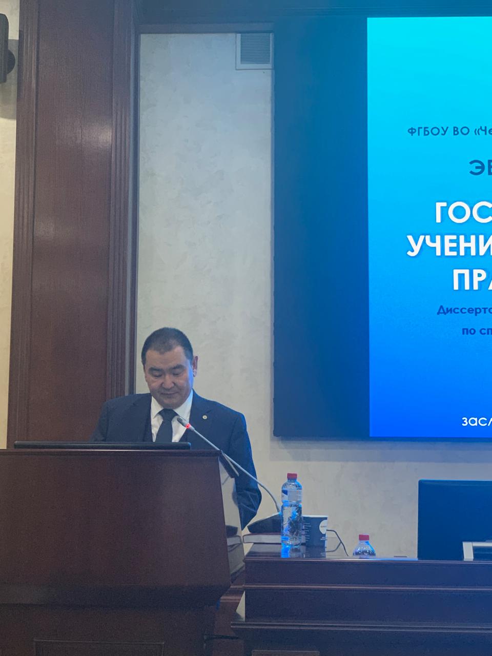 В минувшую субботу в Чеченском государственном университете им. А.А. Кадырова состоялась защита кандидатской диссертации на соискание ученой степени кандидата юридических наук. Официальным оппонентом выступил доктор юридических наук, заведующий кафедрой теории и истории государства и права КалмГУ Евгений Команджаев.