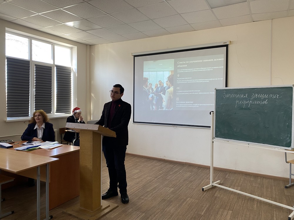 Так, в рамках дисциплины «Русский язык и культура речи» многие студенты показали знание норм русского литературного языка, проявили интерес к предмету. Большинство из них относились добросовестно к занятиям, своевременно готовили зачетные материалы (комплексные диктанты, словари трудностей), на «отлично» защитили итоговые рефераты, показав умение на высоком культурно-речевом уровне выступать публично с научным докладом, готовить научные презентации. И в результате – получили зачет-автомат. В теплой, доброжелательной атмосфере, преодолев волнение, ребята участвовали в дискуссии, отвечали на разнообразные вопросы, используя разнообразные формы речевого этикета.
