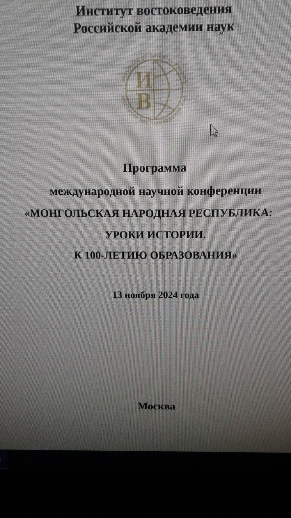 13 ноября 2024 г. состоялась международная конференция «Монгольская Народная Республика: уроки истории. К 100 — летию образования» в Институте востоковедения РАН.