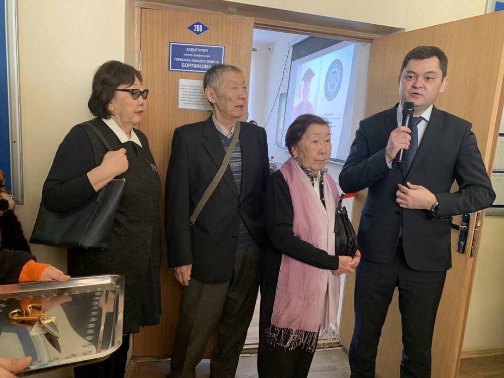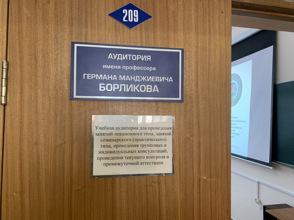 «Сегодня знаменательный день для Калмыцкого государственного университета. 80 лет назад родился ректор КалмГУ Герман Борликов, и вся его жизнь была связана с университетом. Сегодня мы открываем аудиторию имени профессора Г.М. Борликова — человека, который сделал многое для университета и сохранил его в бурные 90-е годы. 20 лет он был его ректором, и то динамичное развитие университета, которое мы наблюдаем сегодня, является результатом его работы. Университет был, есть и будет!», – сказал доктор технических наук, профессор, заведующий кафедрой агроинженерии, председатель диссертационного совета по техническим наукам Валерий Эвиев.