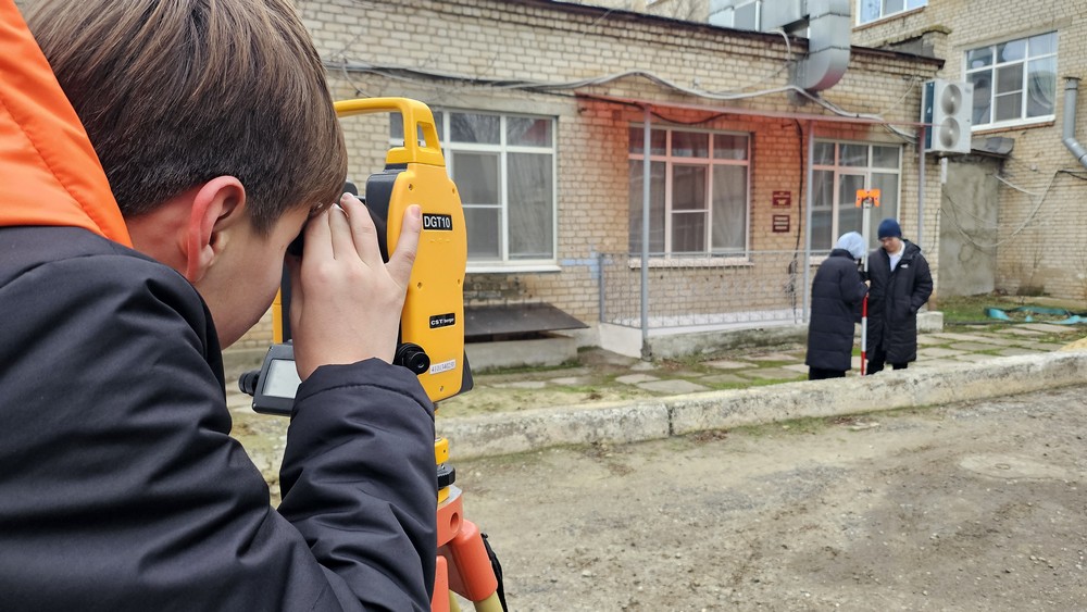 После теоретической части занятия ребята применили полученные знания на практике. Под руководством опытных преподавателей они сделали свои первые замеры с помощью теодалита. Каждый ученик имел возможность лично настроить прибор и провести измерения.