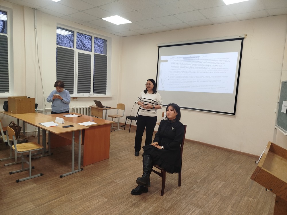 В минувший понедельник состоялось занятие в Школе молодого педагога. Первая часть была посвящена тренингу профессионально-ориентированных риторики и дискуссий. Провели тренинг д.п.н., профессор Кекеева З.О. и старший преподаватель Байтуманова З.Н.