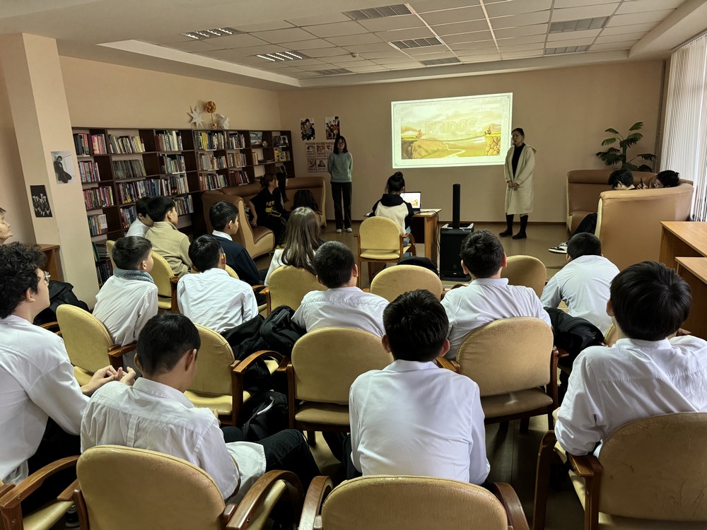 На днях стажеры из Ланчьжоу приняли участие в мероприятии, организованном Национальной библиотекой имени А. М. Амур-Санана для школьников 7-10 классов СОШ № 15. Темой встречи стало «Китай – Великая Поднебесная».
