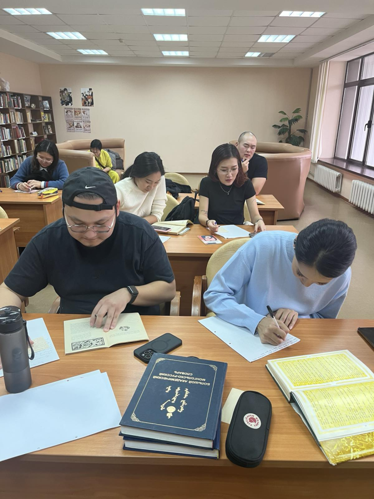 Одной из ключевых площадок для производственной практики стала Национальная библиотека имени Амур-Санана. Здесь студенты занимаются переводом нескольких книг: они переводят вступительные статьи и содержание сборников на монгольский язык, а также выполняют обратные переводы с монгольского на русский язык. Атмосфера в главном республиканском книгохранилище и дружелюбное отношение сотрудников библиотеки способствуют положительным отзывам стажеров.