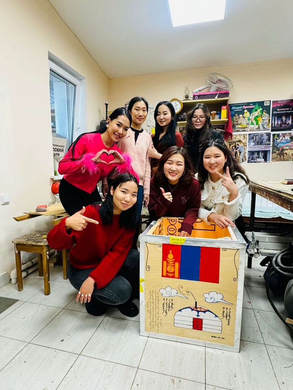 На второй день стажеры посетили декорационный цех, где художник-бутафор А. Данжеев предложил им задание. В рамках XXI Международного фестиваля русских театров национальных республик России и зарубежных стран «Мост дружбы» в Йошкар-Оле театральной труппе необходимо было подготовить роспись ящика для патефона. Студенты из Монголии создали на ящике изображения монгольской символики, включая монгольский флаг и юрту, а также написали строки из известного монгольского стихотворения. В процессе работы бутафоры делились с ними советами и культурологическими терминами, что способствовало расширению их лексического запаса.