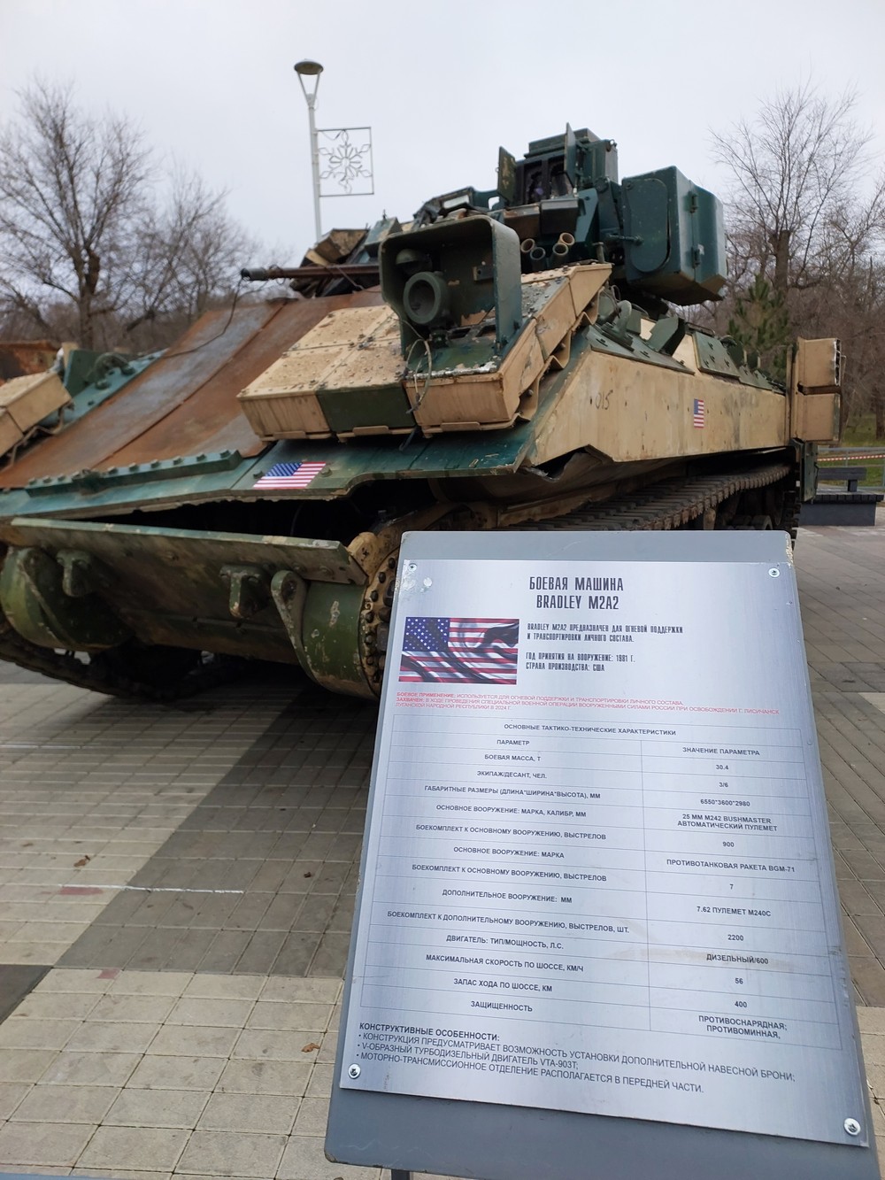 На выставке были представлены трофейные бронетранспортёры, танки, вездеходы, а также оружие, дроны и беспилотные летательные аппараты, захваченные у Украины и стран НАТО. Участники специальной операции с интересом делились историями о том, как была захвачена представленная техника.