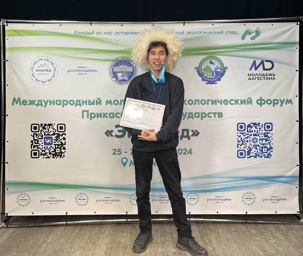 По итогам представления экологических проектов студент 3 курса направления «Химия» Роберто Бадмаев был награжден дипломом 1-й степени за высокие результаты и значительный вклад в разработку экологических инициатив.