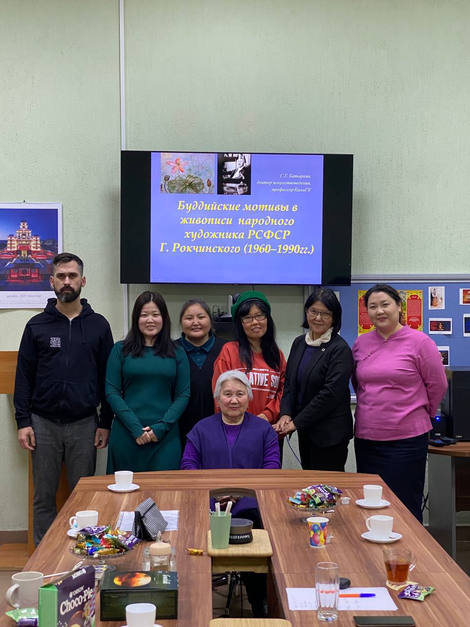 Сегодня в научной лаборатории «Комплексные буддологические исследования» КалмГУ прошел мастер-класс профессора Светланы Гарриевны Батыревой на тему «Буддийские мотивы в живописи народного художника РСФСР Г. Рокчинского (1960-1990 гг.)».