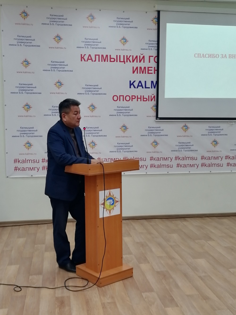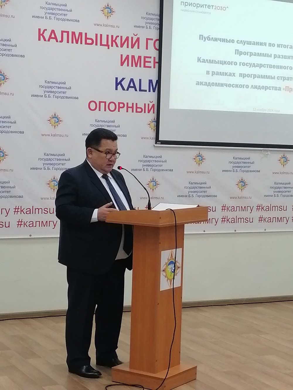 В КалмГУ прошли публичные слушания по итогам реализации Программы развития Калмыцкого государственного университета в рамках программы стратегического академического лидерства «Приоритет-2030». В частности, были заслушаны доклады по двум стратегическим проектам: «Циркулярная экономика, зеленые технологии, сохранение биологического разнообразия – базовые векторы экономического развития Республики Калмыкия и научно-исследовательской повестки КалмГУ» и «Республика Калмыкия – перекресток культур, туристических путей и гуманитарных проектов». Также были обсуждены итоги реализации программы развития КалмГУ «Приоритет 2030» в сфере социальной политики, молодежной политики, образования, науки, кадрового развития, цифровой трансформации.