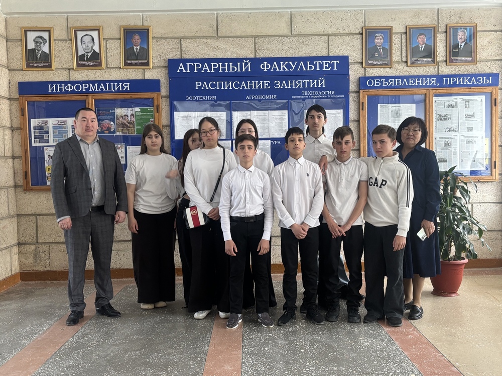 Мухлаева Эльвира Ивановна, учитель биологии Превомайский сельский лицей: 8 апреля 2025 года учащиеся агрокласса Первомайского сельского лицея в очередной раз посетили аграрный факультет КалмГУ. День в Калмыцком государственном университете им. Б.Б. Городовикова был полон приятных удивлений — экскурсии по просторному и светлому корпусу, в лаборатории, зоологический музей. декан аграрного факультета Натыров А.К. ознакомил нас с 55-летней историей, современным состоянием и перспективами аграрного факультета. Занятия и мастер-классы для ребят провели уже знакомые ребятам профессора и доценты, День был очень впечатляющим и насыщенным. Теперь ребята с нетерпеньем ждут в лицее преподавателей, чтобы показать им свои успешные работы в теплице.