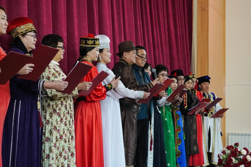 Студенты, коллектив преподавателей и сотрудников института подготовили концерт, который открыл сводный хор ИКФВ исполнением гимна калмыцкого университета.