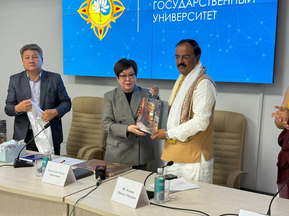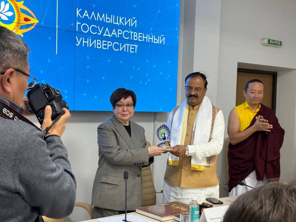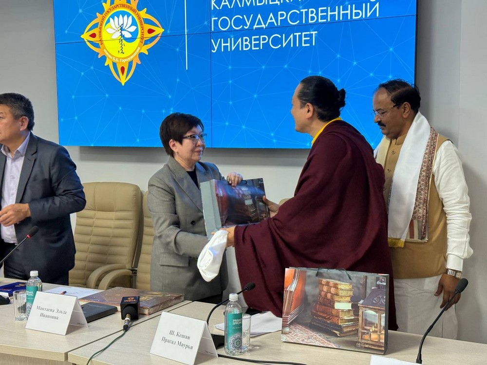 В Калмыцком государственном университете имени Б.Б. Городовикова состоялся визит делегации из Республики Индия. В ее состав вошли заместитель главного министра штата Уттар-Прадеш господин Шри Кешав Прасад Маурья, Его Святейшество 43-й Тризин Сакья Ринпоче, Министр образования Посольства Индии господин Винай Кумар и другие. Гости передали в дар КалмГУ священный буддийский канон «Ганжур» — собрание учений Будды на монгольском языке.