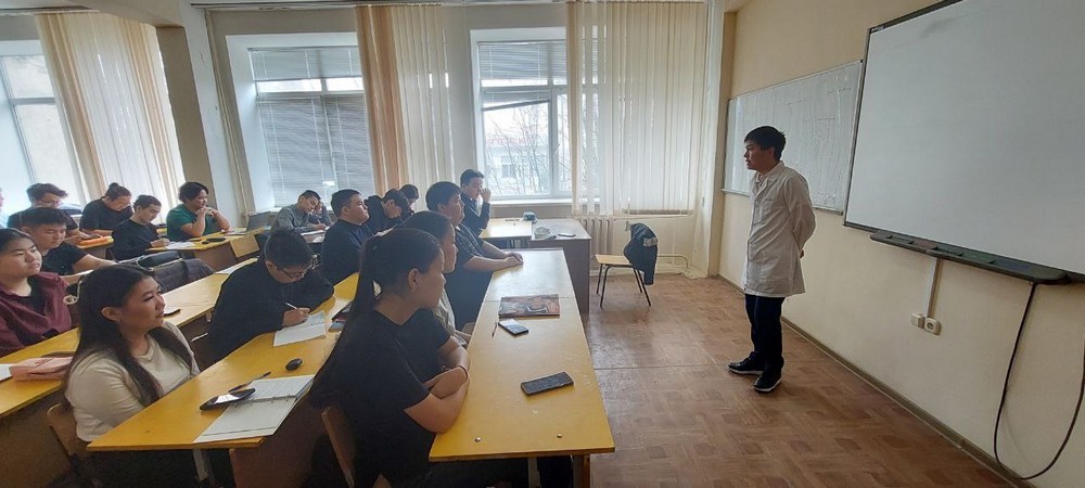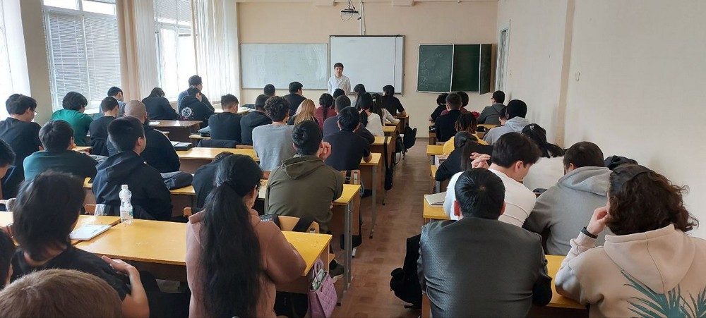 В рамках акции «Чистое поколение» на факультете ФМФИТ прошла лекция «Пагубное влияние алкоголя и наркотиков организм».Практикующий сотрудник Республиканского наркологического диспансера медицинский психолог Давид Боков выступил с докладом перед студентами факультета физики, математики и информационных технологий.