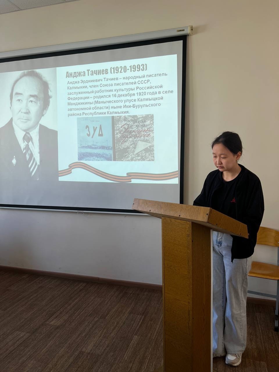 Вечер позволил студентам глубже познакомиться с наследием писателей-фронтовиков Калмыкии, услышать уникальные исторические факты и осмыслить важность литературы в сохранении исторической памяти и воспитании патриотизма.