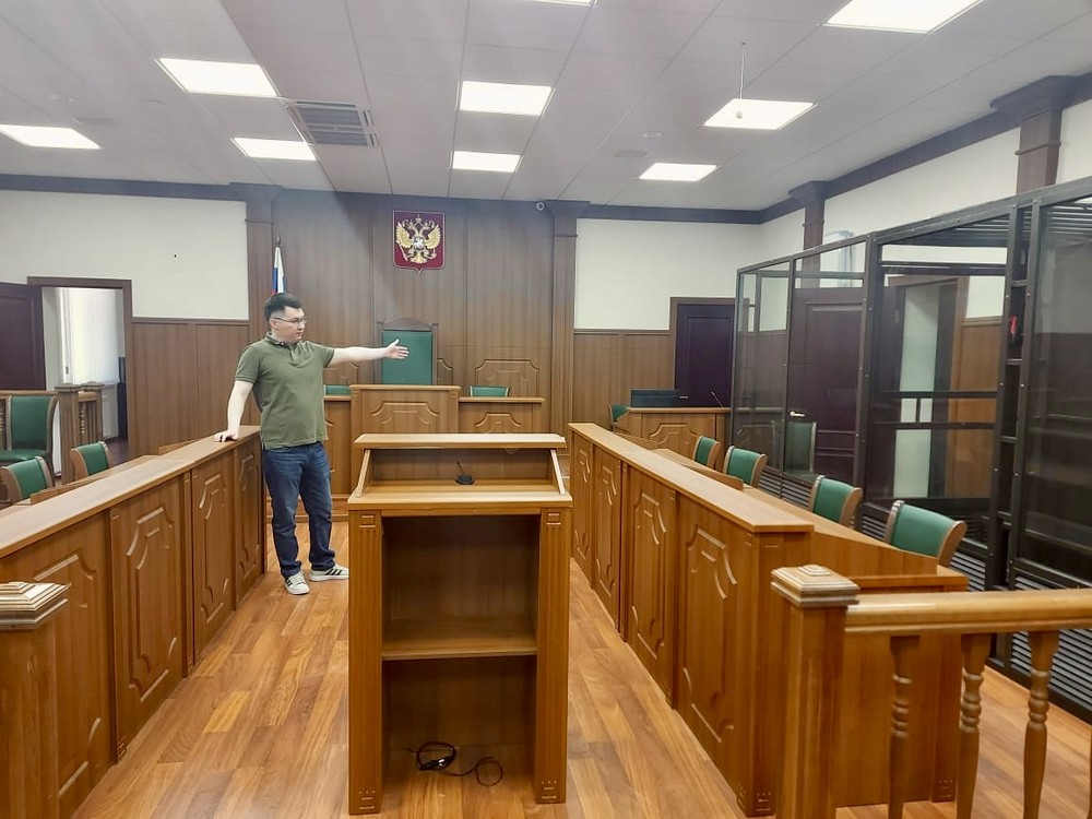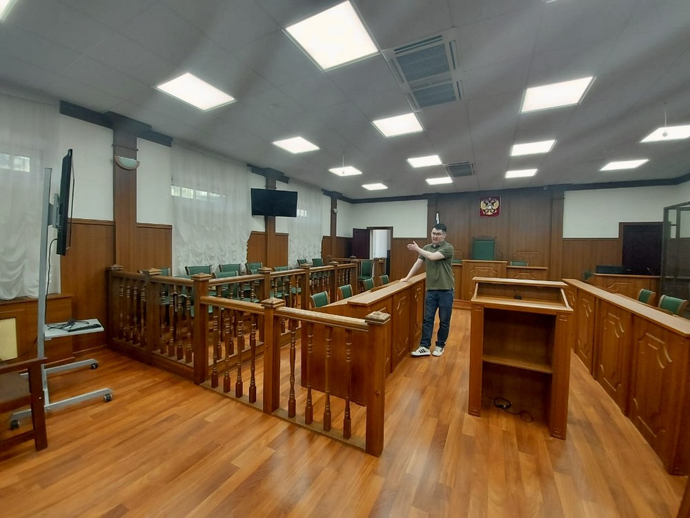 Помощник председателя судебной коллегии по уголовным делам Верховного суда Республики Калмыкия Мушаев Дмитрий Истяевич подробно рассказал об особенностях расположения сторон обвинения и защиты в зале, системе нумерации присяжных заседателей, а также показал комнату, где присяжные принимают свои решения. Особое внимание уделили техническому оснащению зала: в частности, телевизорам, которые используются для просмотра видеосъемки, представляемой в качестве доказательств, видеокамерам, и др.