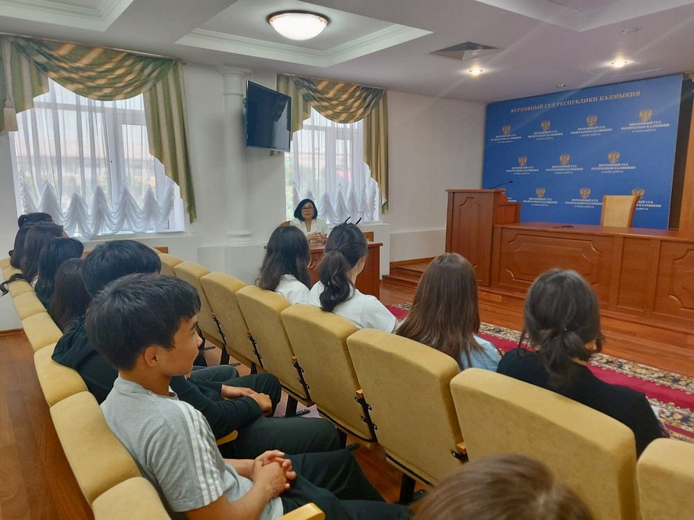 В минувшую субботу учащиеся «Школы юного юриста КалмГУ» совершили экскурсию в Верховный суд Республики Калмыкия. В рамках мероприятия школьники побывали в зале присяжных заседателей — месте, где принимаются важные решения о виновности или невиновности подсудимых.