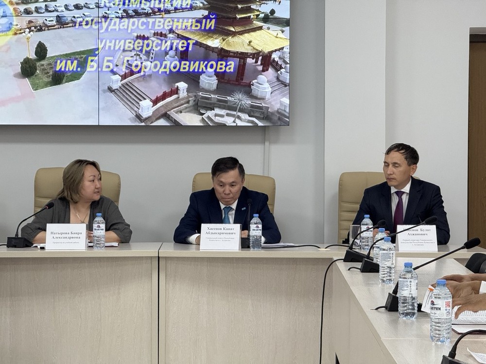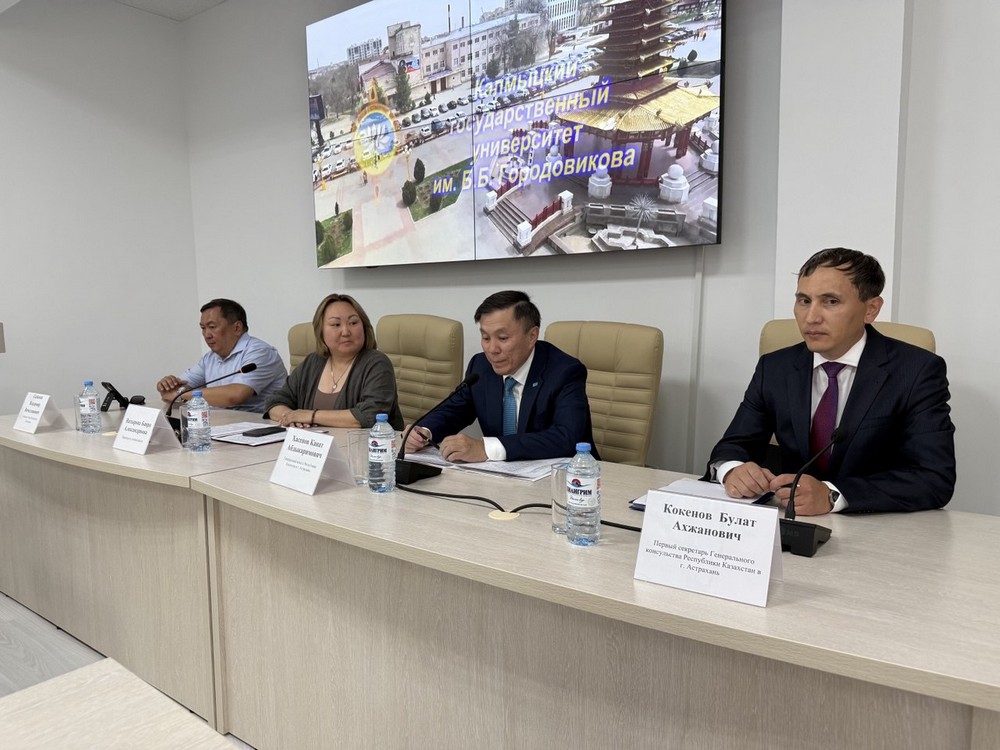 Сегодня Генеральный консул Республики Казахстан в Астрахани Канат Хасенов и первый секретарь Генерального консульства Булат Кокенов встретились с профессорско-преподавательским составом Калмыцкого государственного университета имени Б.Б. Городовикова.