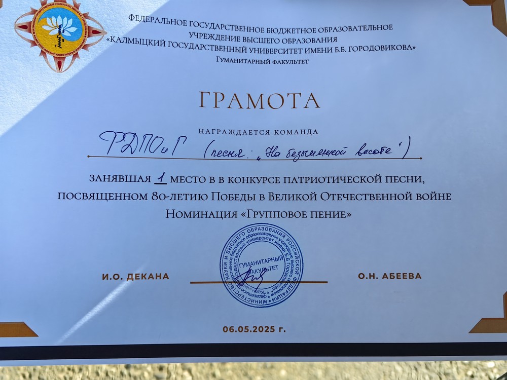 В канун юбилея Великой Победы ярким событием в жизни КалмГУ стал Конкурс патриотической песни в исполнении иностранных студентов, организованный кафедрой германской филологии гуманитарного факультета. Преподаватели и студенты собрались вместе, чтобы отдать дань глубочайшего уважения, благодарности и признательности тем, кто 80 лет назад подарил нам мирное небо над головой.