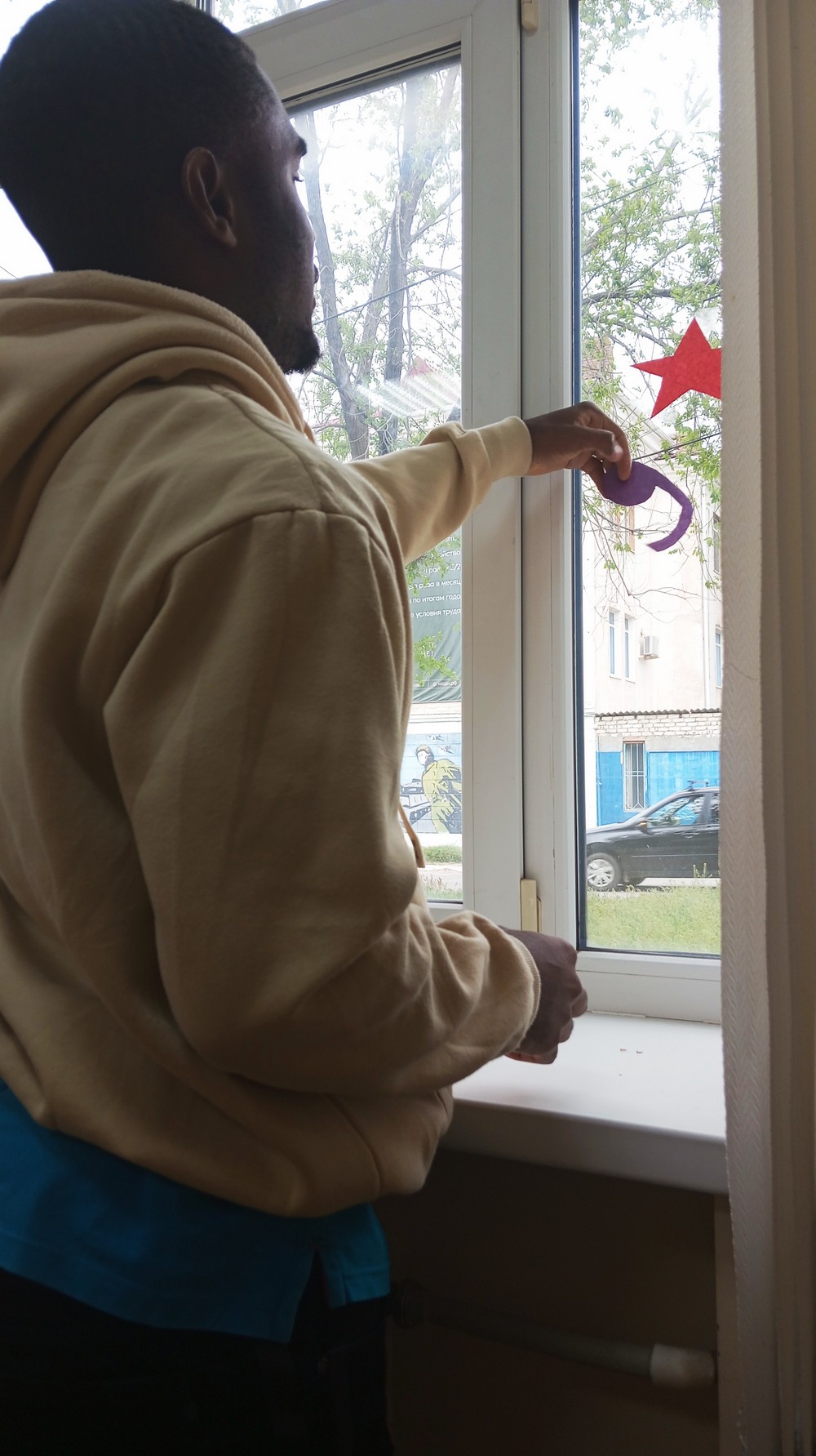 Во-первых, назвать множественное число от слов, связанных с праздником. Например, танк – танки. Во-вторых, по очереди перечислить военные звания. Это задание оказалось легким для слушателей из Туркменистана, которые служили в армии. В-третьих, одна команда должна была назвать морской транспорт, а вторая – воздушный. В четвертом испытании ребята слушали песню О. Газманова «Господа офицеры» и должны были ответить на вопрос: «Сколько раз в песне звучит слово «офицеры»? Пятым этапом стало разгадывание кроссворда по теме занятия. Заключительное творческое задание «Окна Победы», в котором иностранные граждане должны были изобразить символику праздника, с чем они с удовольствием справились. Результаты их труда можно увидеть в аудиториях 108 и 201 корпуса 5 КалмГУ. По итогам игры победили команды «Рэмбо» и «Любовь».
