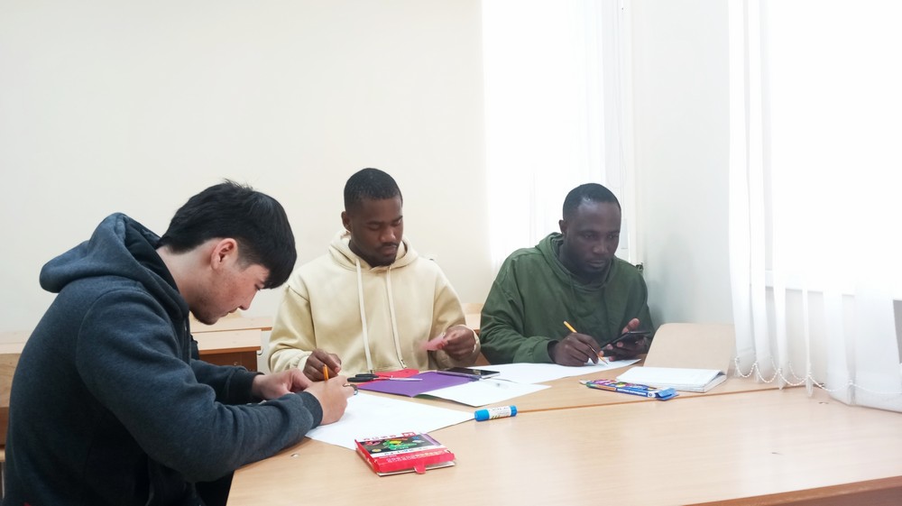Перед занятием каждая группа была разделена на две команды. В первой группе ребята выбрали названия команд «Рэмбо» и «Братья», во второй – «Львы» и «Любовь». Иностранцы должны были выполнить несколько заданий.