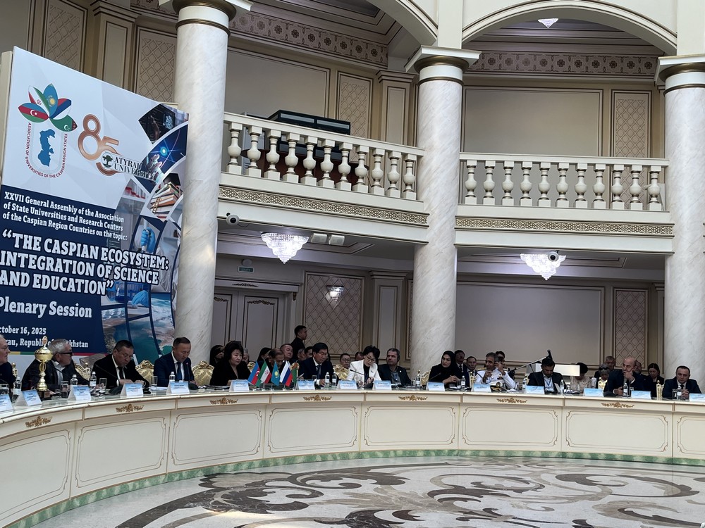 6-17 октября 2025 г. в г. Атырау Республики Казахстан на базе Атырауского университета имени Халела Досмухамедова прошла XXVII Генеральная Ассамблея Ассоциации университетов и научно-исследовательских центров Прикаспийских стран «Экосистема Каспия: интеграция науки и образования», в которой принимали участие представители органов власти, высших учебных заведений, общественные деятели Азербайджана, Ирана, Казахстана, России и Туркменистана.