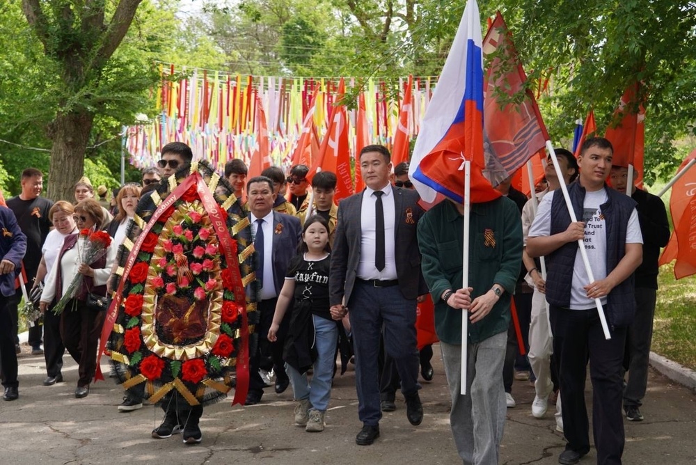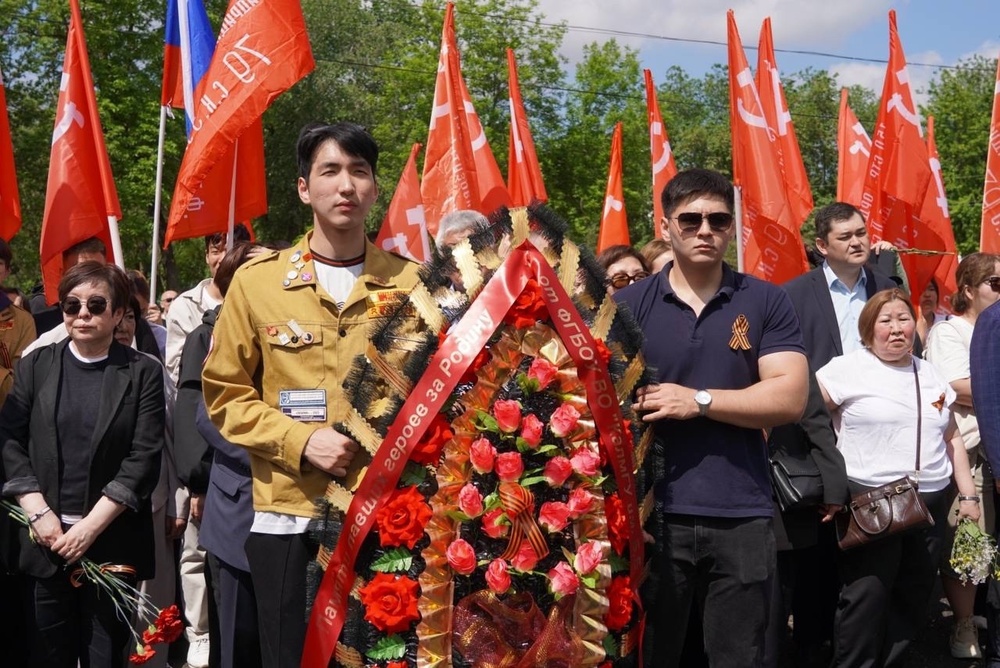 Сегодня коллектив и студенты Калмыцкого государственного университета имени Б.Б. Городовикова во главе с ректором Бадмой Катиновичем Салаевым приняли участие в торжественном шествии и церемонии возложения цветов к Вечному огню. Мероприятие прошло в рамках празднования 80-летия Победы в Великой Отечественной войне.