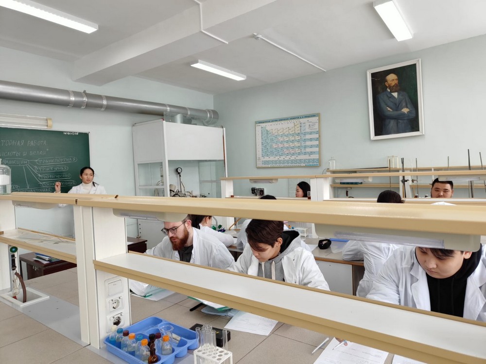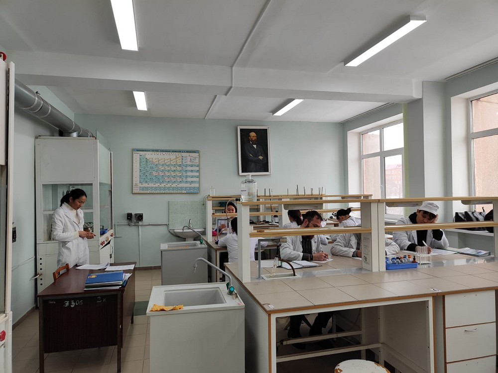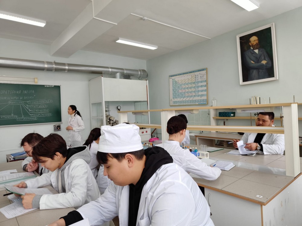 На открытом конкурсном лабораторном занятии по теме «Аминокислоты и белки» под руководством ассистента Бамбеевой Р.Н. были проведены цветные качественные реакции на белок и аминокислоты. Суденты обсудили ход химических реакций, возможность обнаружения пептидных связей и некоторых типов аминокислот при помощи используемых реакций, а также оформили полученные результаты выполненной работы в виде таблицы.