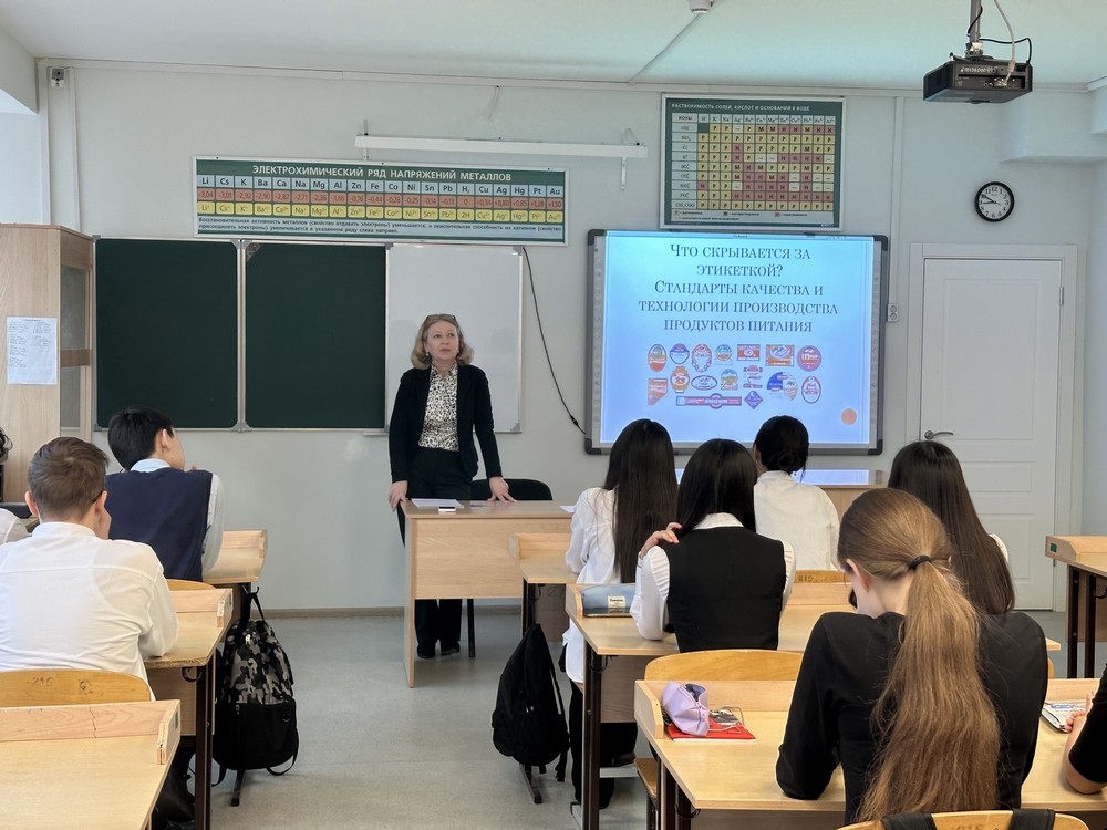 Сегодня в рамках проекта состоялась встреча на базе МБОУ №3 им. имени Сергиенко Н.Г. Перед учащимися выступила преподаватель аграрного факультета, доцент, к.с/х. наук Очирова Елена Николаевна. Она провела интерактивную лекцию на тему «Что скрывается за этикеткой: стандарты качества и технологии производства продуктов питания».