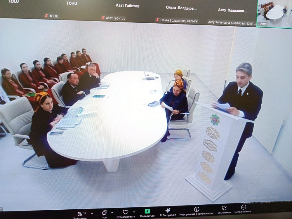 Преподаватели КалмГУ выступают с докладами в онлайн-формате, участвуют в дискуссиях. Необходимо отметить активную работу по налаживанию взаимодействия с вузами Туркменистана факультета довузовской подготовки и обучения иностранных граждан, инженерно-технологического факультета, факультета математики, физики и информационных технологий и медицинского факультета.