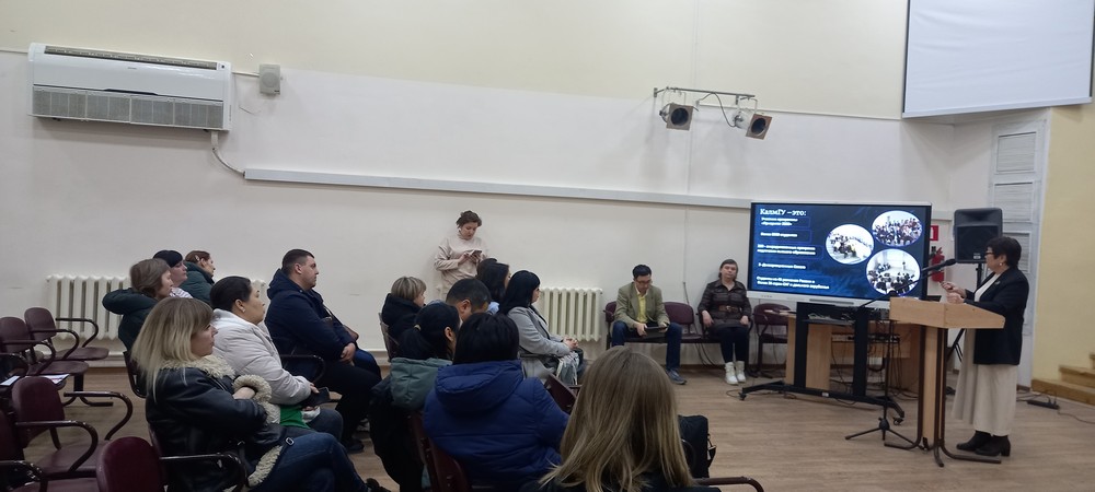 Члены МПГ в составе руководителя — доктора педагогических наук, профессора, заведующей кафедрой Р. Б. Дякиевой, а также членов группы Э. А. Сокальского и Л. А. Никитиной представили презентацию о КалмГУ, рассказали о преимуществах поступления в региональный вуз и ответили на вопросы родителей. Раиса Батнасуновна подробно ознакомила присутствующих с тем, что в университете студенты активно участвуют в деятельности студенческих организаций, таких как Студенческий Совет, Профком обучающихся КалмГУ, Центр студенческого творчества (вокальная студия «Анданте», ансамбль «Бумбин Орн», оркестр КалмГУ), Педагогический студенческий отряд «Джангар», волонтерский отряд «Цаган седкл», Открытая университетская лига КВН и др.