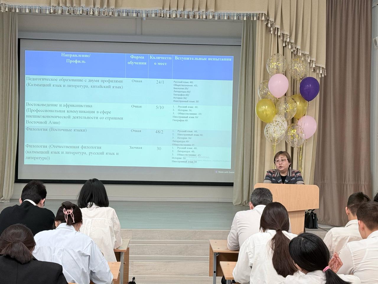 Елена Владимировна рассказала о Калмыцком государственном университете, который не раз занимал лидирующее положение среди вузов страны, участнике программы «Приоритет 2030», а также о реализуемых направлениях обучения и перспективах, которые открываются перед выпускниками университета.