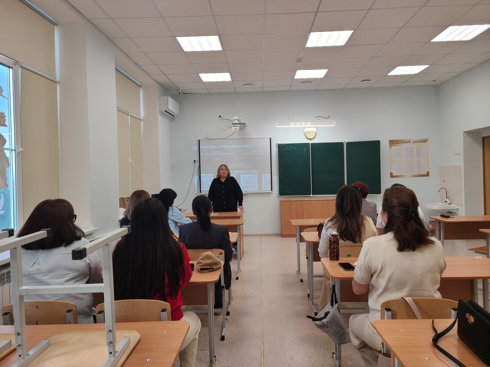 6 мая мобильная профориентационная группа «Запад» встретилась с родителями выпускников МБОУ «Калмыцкая национальная гимназия им. А.Ш. Кичикова». В собрании приняли участие директор гимназии Е.Н. Ченкураева, зам. директора по учебной работе Мукебенова В.В. и классный руководитель 11-го класса Цедеева Г.Н.