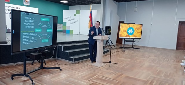 Профориентационная группа «Запад» на данном собрании была представлена доцентом инженерно-технологического факультета Гиляной Артаевой и старшим преподавателем педагогического факультета Эдуардом Сокальским. Родители и обучающиеся подробнее узнали обо всех видах стипендий, на которые могут претендовать студенты КалмГУ. Большое внимание было уделено, в частности, возможности для каждого студента участвовать в рейтинге и получать повышенную государственную академическую стипендию.