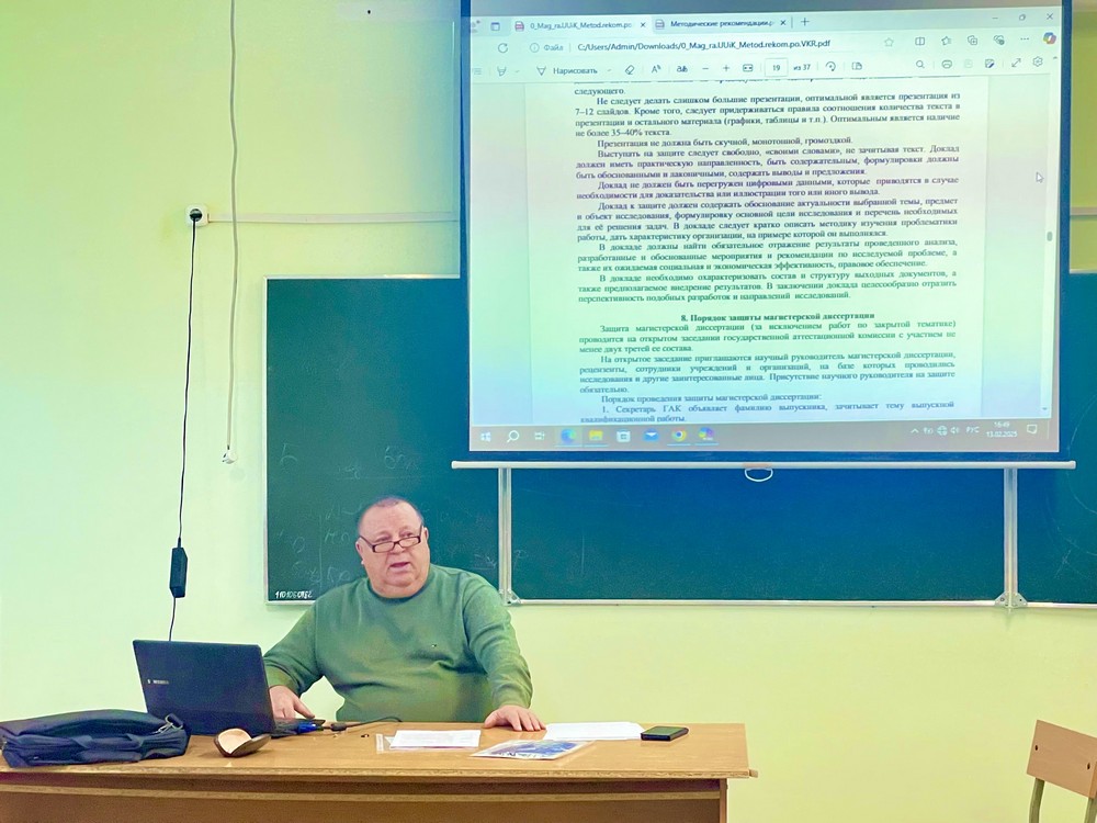 Александр Витальевич подробно довел до сведения участников основные требования к написанию выпускной квалификационной работы, особо подчеркнув важность правильного определения предмета исследования. Он акцентировал внимание на заимствовании эмпирической базы, что является ключевым аспектом успешной работы.
