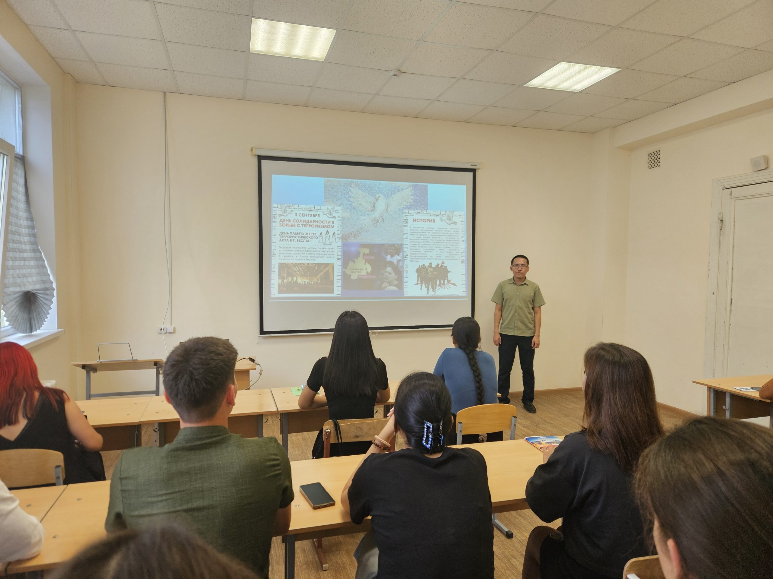 3 сентября на гуманитарном факультете для первокурсников направления «Документоведение и архивоведение» прошел кураторский час, посвященный Дню солидарности в борьбе с терроризмом.