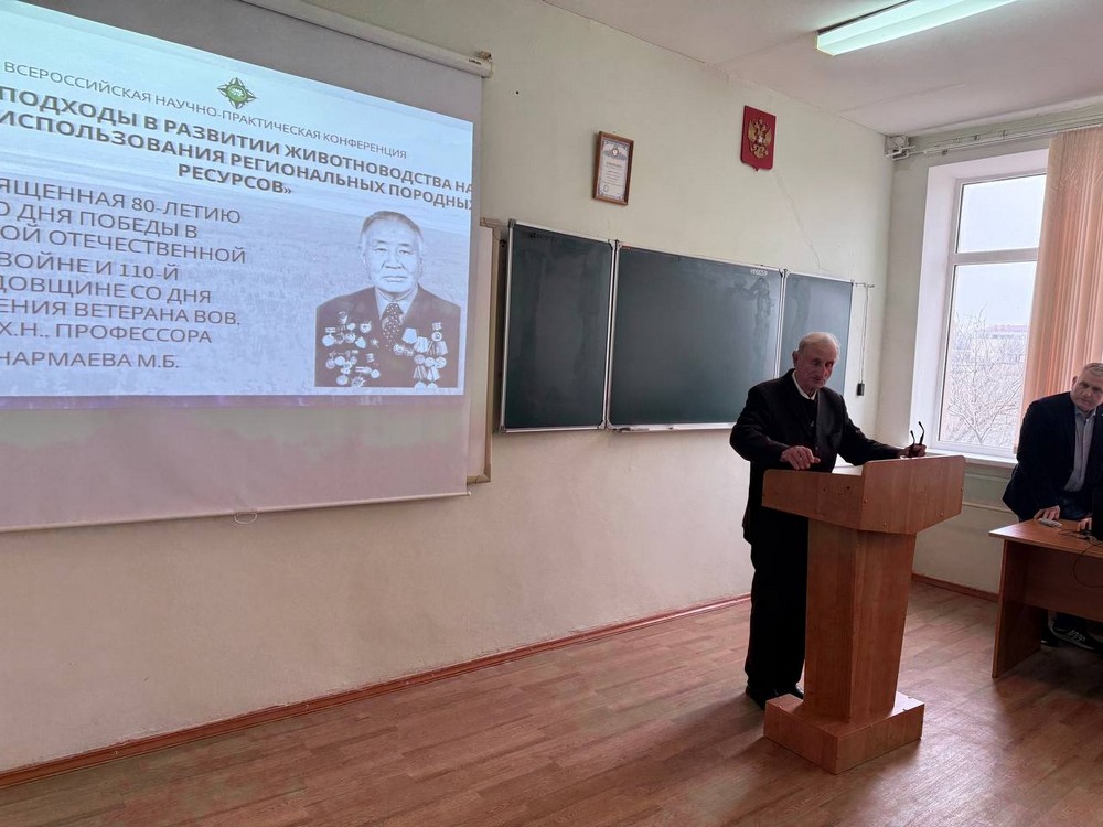 Сегодня в Калмыцком государственном университете состоялась Всероссийская научно-практическая конференция с международным участием «Новые подходы в развитии животноводства на основе использования региональных породных ресурсов». Мероприятие было посвящено двум знаменательным датам: 80-летию со дня Победы в Великой Отечественной войне 1941-1945 годов и 110-й годовщине со дня рождения ветерана ВОВ, доктора сельскохозяйственных наук, профессора Морхаджи Бамбаевича Нармаева.