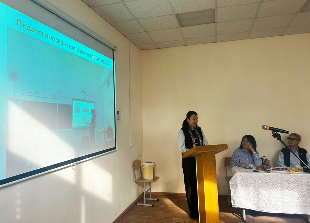 В первой части научно-практического семинара заведующая кафедрой германской филологии, кандидат филологических наук, доцент Ж.Н. Сарангаева рассказала об истории создания и основных направлениях работы кафедры. Кандидат филологических наук, доцент Т.М. Кеекева поделилась опытом использования технологий искусственного интеллекта в образовании. Учителя-предметники МБОУ «Элистинский лицей» В.А. Улюмджиева и МБОУ СОШ № 17 имени Д.Н. Кугультинова О.М. Тишина рассказали о специфике организации педагогической практики в их школах. Молодые учителя Очир-Горяева А.Е. (МБОУ СОШ № 17) и Дорджиев Г.Г. (МБОУ СОШ № 3) с энтузиазмом делились своими достижениями и опытом участия в педагогических конкурсах.