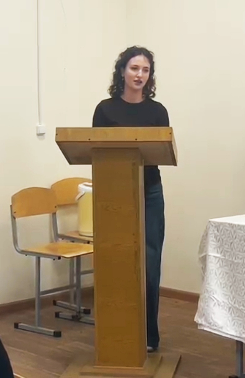 Студентка 4 курса направления «Лингвистика» (Перевод и переводоведение), Книга София, выпускница кафедры этого года, поделилась своими мыслями о профессии учителя. Она рассказывала, как её родные бабушки и дядя, учителя разных предметов, с энтузиазмом готовились к урокам, волновались перед аттестациями и радовались успехам своих учеников. Но она также видела их усталость и разочарования. Сегодня, по словам Софии, она увидела образ учителя с другой стороны: это не только учитель-предметник, но и психолог, методист, наставник и дипломат. « … Учитель ежедневно играет десятки ролей, требующих сил, терпения и мудрости. Но главная награда — это моменты, когда у ребёнка загораются глаза от понимания. Сейчас, оглядываясь назад, я понимаю, что эта профессия прекрасна и прекрасна именно потому, что соединяет в себе знание и душу, строгость и теплоту, прошлое и будущее. И кто знает… может быть, однажды я сама стану частью моей педагогической династии…».