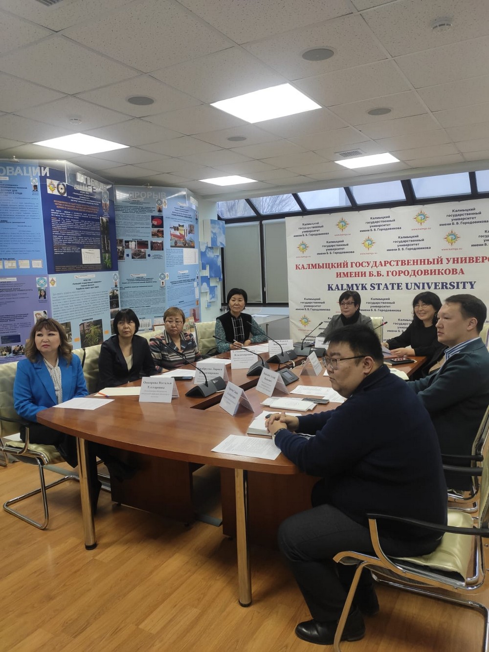 Модератором мероприятия выступила проректор по Международному сотрудничеству, профессиональному и дополнительному образованию Кониева О. Н. Во встрече также приняли участие главный специалист отдела среднего профессионального, регионального образования и науки Министерства образования и науки РК Муева Кермен Викторовна, декан факультета математики, физики и информационных технологий Сумьянова Е. В., и. о. декана гуманитарного факультета Абеева О. Н., начальник учебно-методического управления Оросов С. А., начальник управления профессионального и дополнительного образования Конушев А. И., и. о. зав. кафедрой биологии и экологии Онкорова Н. Т., и. о. зав. кафедрой химии и фармацевтической технологии Джабруева Л. В., начальник отдела международных программ и грантов УМД Алексеева С.С., главные специалисты отдела международных программ и грантов и выпускник КалмГУ Хамраев М. Я.