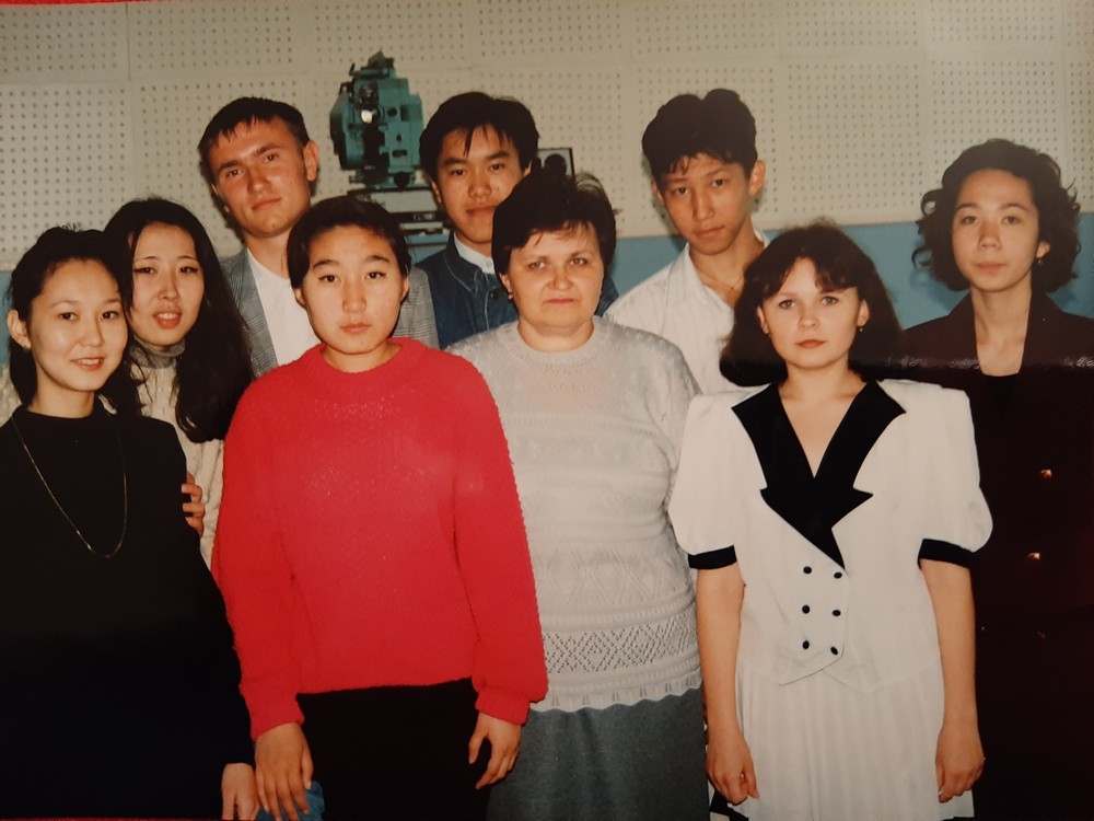 Фото 4. Шаповалова Людмила Юрьевна со студентами, 1995-1996 учебный год