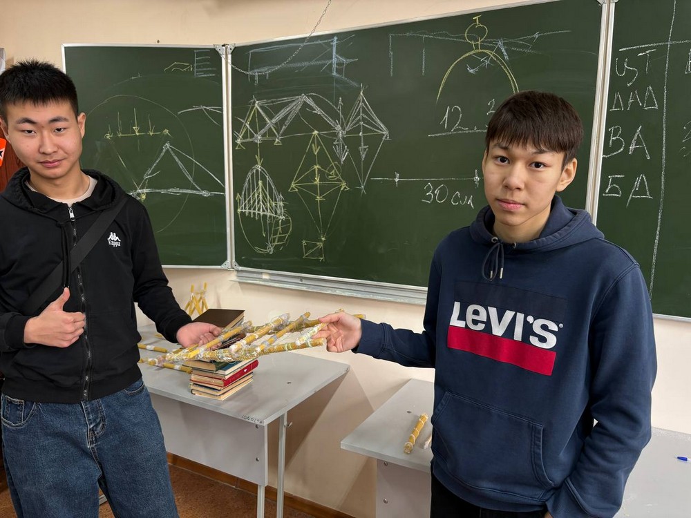 Финальным испытанием стало нагружение мостов до их разрушения. Победителем конкурса стала команда Александра и Эрдни — их мост выдержал наибольший вес.