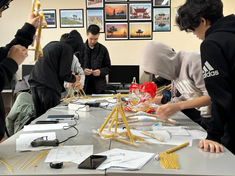 Во время урока будущие строители познакомились с понятием эпюры, научились её рассчитывать и разбирать основные принципы проектирования ферм. После теоретической части студенты разделились на четыре команды и в формате конкурса проектировали мосты из макарон. Каждая группа старалась создать конструкцию, которая выдержит максимальную нагрузку.