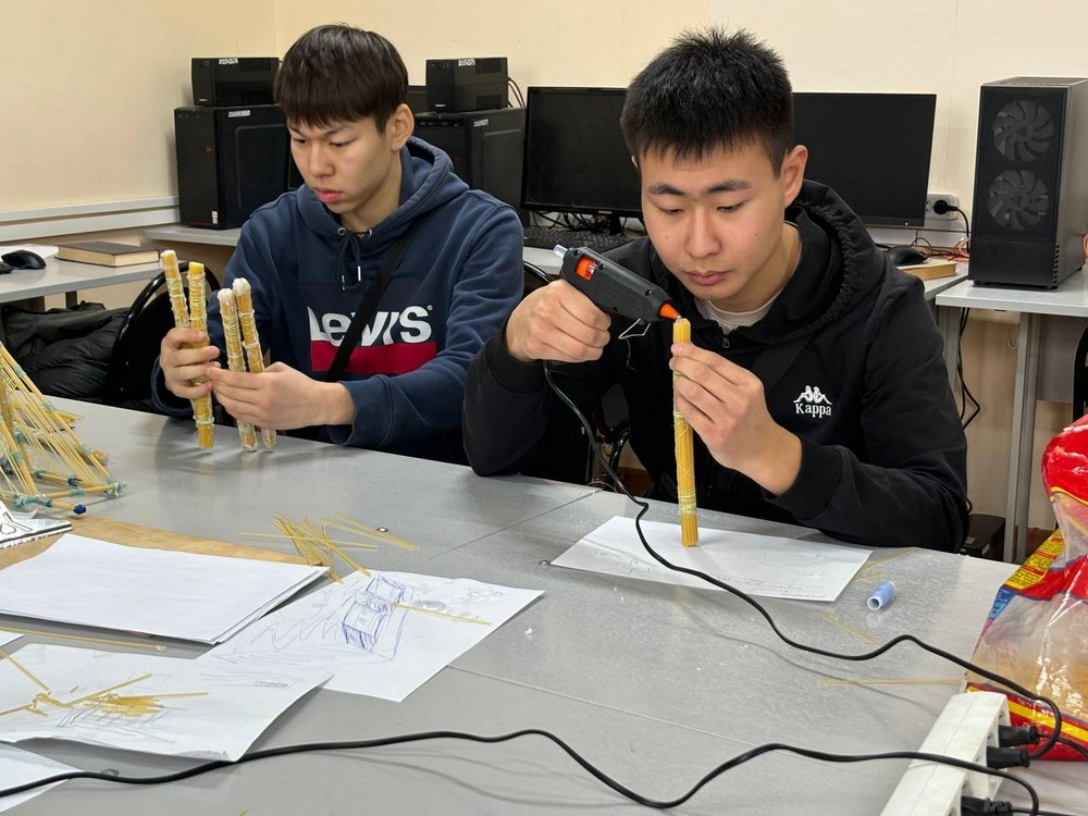 В рамках профессионального модуля «Участие в проектировании зданий и сооружений» преподаватель Бова Эренженов провёл открытый урок, посвящённый основам расчёта ферм. Тема занятия — «Макаронный мост», где студенты на практике изучили принципы работы ферменных конструкций.