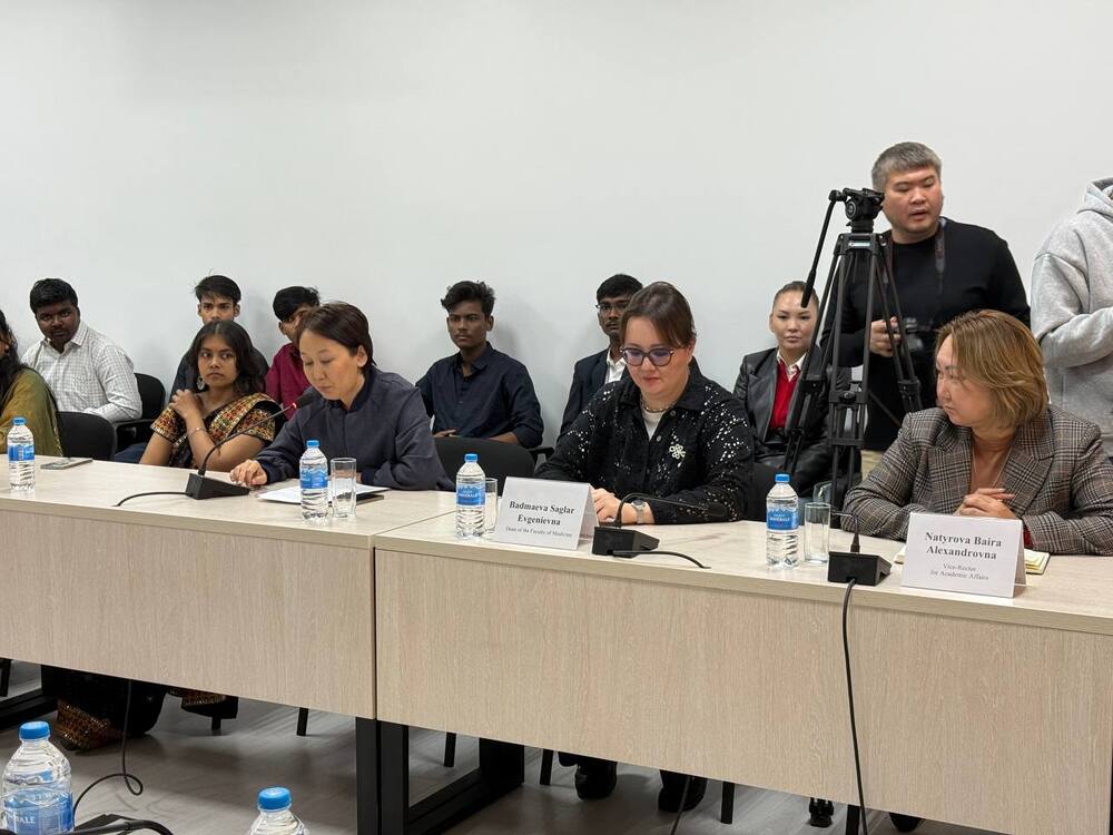 Министр по вопросам образования и всеобщего благополучия при посольстве Индии в России Винай Кумар встретился со своими соотечественниками – студентами-медиками, которые только начали учебу в Элисте. На встрече присутствовали ректор университета Бадма Салаев, вице-премьер правительства Калмыкии Очир Джамбинов, сотрудники вуза.