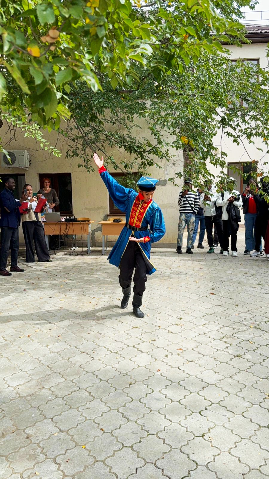 Пока жюри совещалось, солист образцово-художественного ансамбля «Веснушки» Болдырев Богдан выступил перед слушателями с танцем «Кювюда би». И.о. декана ФДПОИГ Голубева Е.В. поздравила ребят с тем, что они стали слушателями факультета и пожелала развивать свои знания русского языка, участвуя в культурно-массовой деятельности ФДПОИГ.