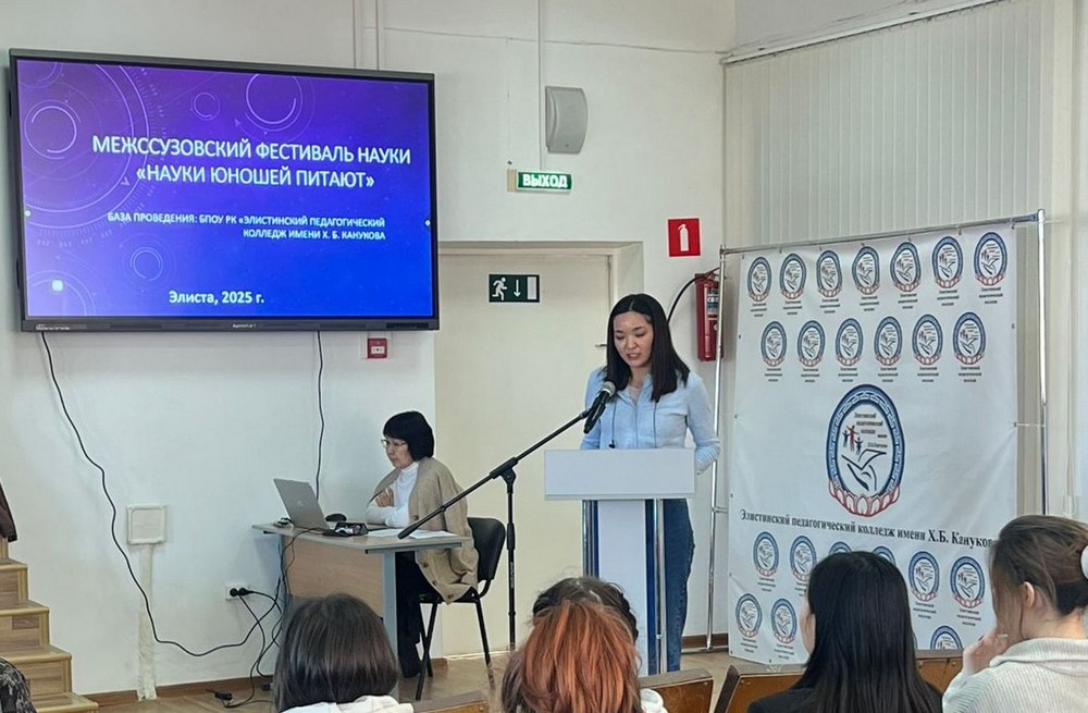 В прошедшую пятницу в Элистинском педагогическом колледже имени Х.Б. Канукова состоялся фестиваль науки «Науки юношей питают», в работе которого по приглашению администрации колледжа приняли участие магистранты 1 года обучения направления «Филология» Басаева К. и Кахраманова С. под руководством доцента кафедры русского языка и общего языкознания Кичиковой Н.А.
