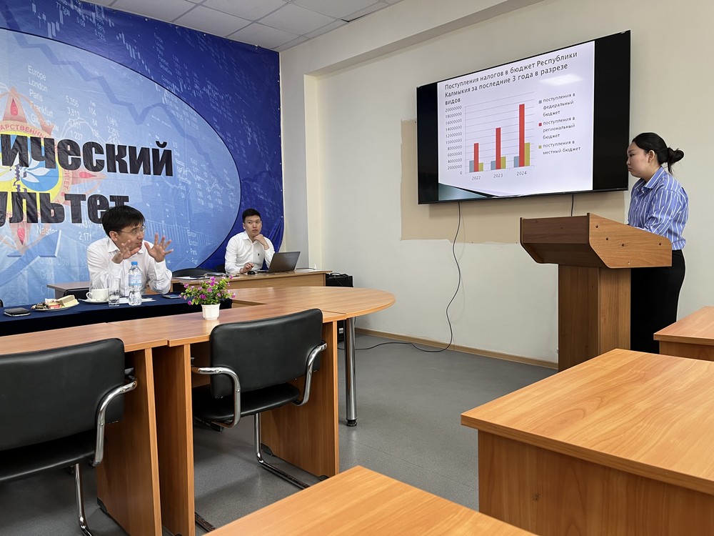 Сегодня на кафедре экономической безопасности, учета и финансов состоялась предварительная защита выпускных квалификационных работ выпускников с участием работодателей. В этом учебной году на выполнение ВКР поступили заявки от следующих работодателей: АО «Завод «Звезда», УНФС по Республике Калмыкия, филиала ПАО «Россети Юг» — «Калмэнерго», Финансового управления Яшкульского РМО, УФПС «Почта России», БУ РК «Республиканская больница им. П.П. Жемчуева», Контрольно-счетная палата Республики Калмыкия.