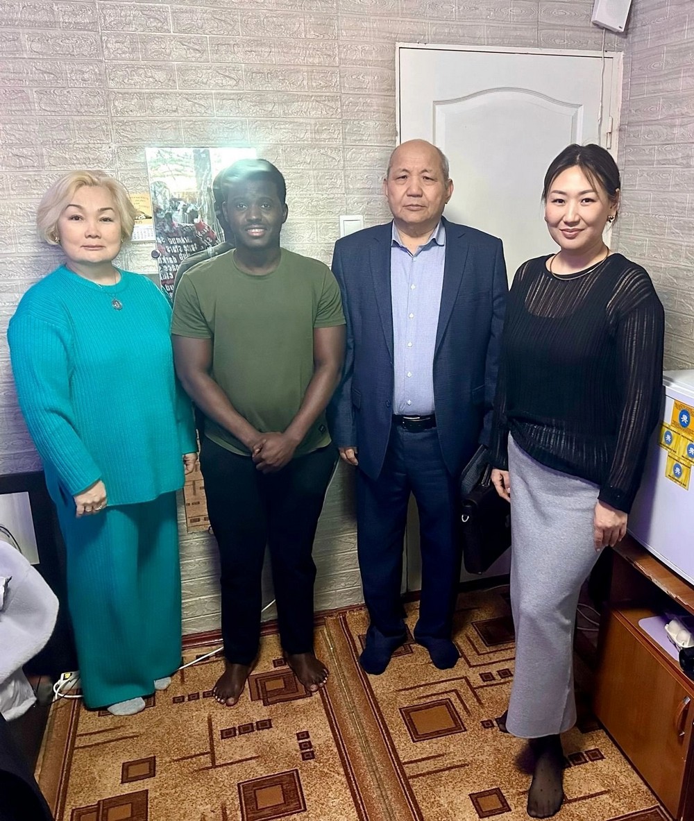 Заведующая кафедрой Герензел Яшкуловна Казакова и кураторы А.Б.Мантусов, Б.В.Санджиева, А.С.Рвачева совершили визит с целью проведения воспитательной работы и контроля качества проживания студентов. Обсудили актуальные вопросы их учебного процесса, уровня адаптации и повседневной жизни. Студенты получили возможность поделиться своими впечатлениями, рассказали о своих культурных традициях, планах на будущее, личных переживаниях.
