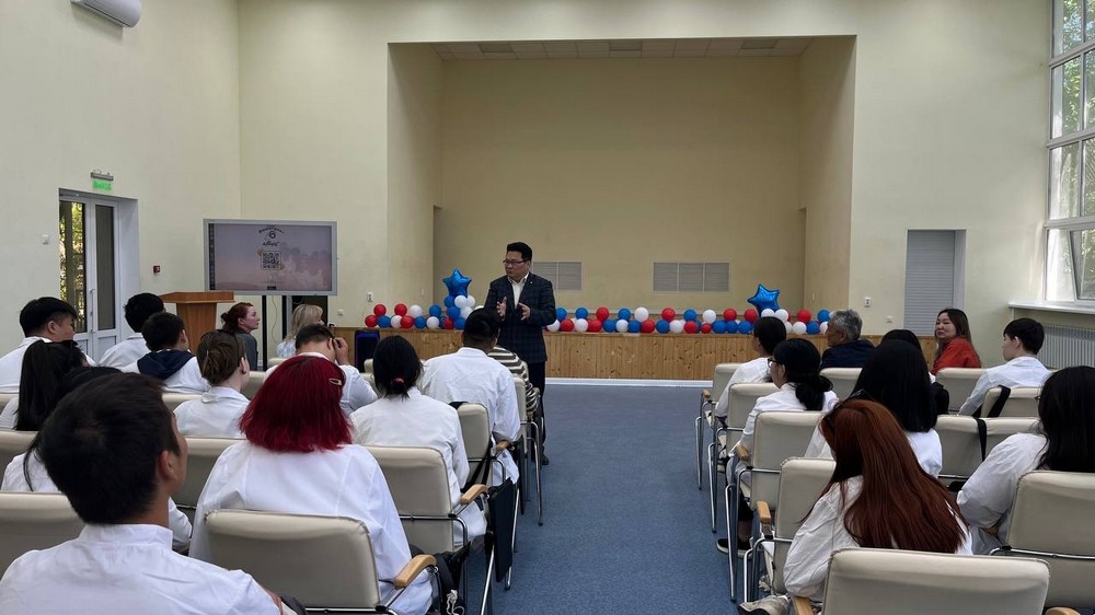 Мероприятие началось под звуки гимна ветеринаров России. Открывая встречу и.о. заведующего кафедрой ветеринарной медицины аграрного факультета КалмГУ С.С.Маштыков, обратился к студентам: «Мы хотим предоставить возможность напрямую пообщаться с вашими будущими работодателями. Это очень важно, потому что сегодня в аудитории есть те, кто в скором времени вольется в большую и дружную семью ветеринарных работников».